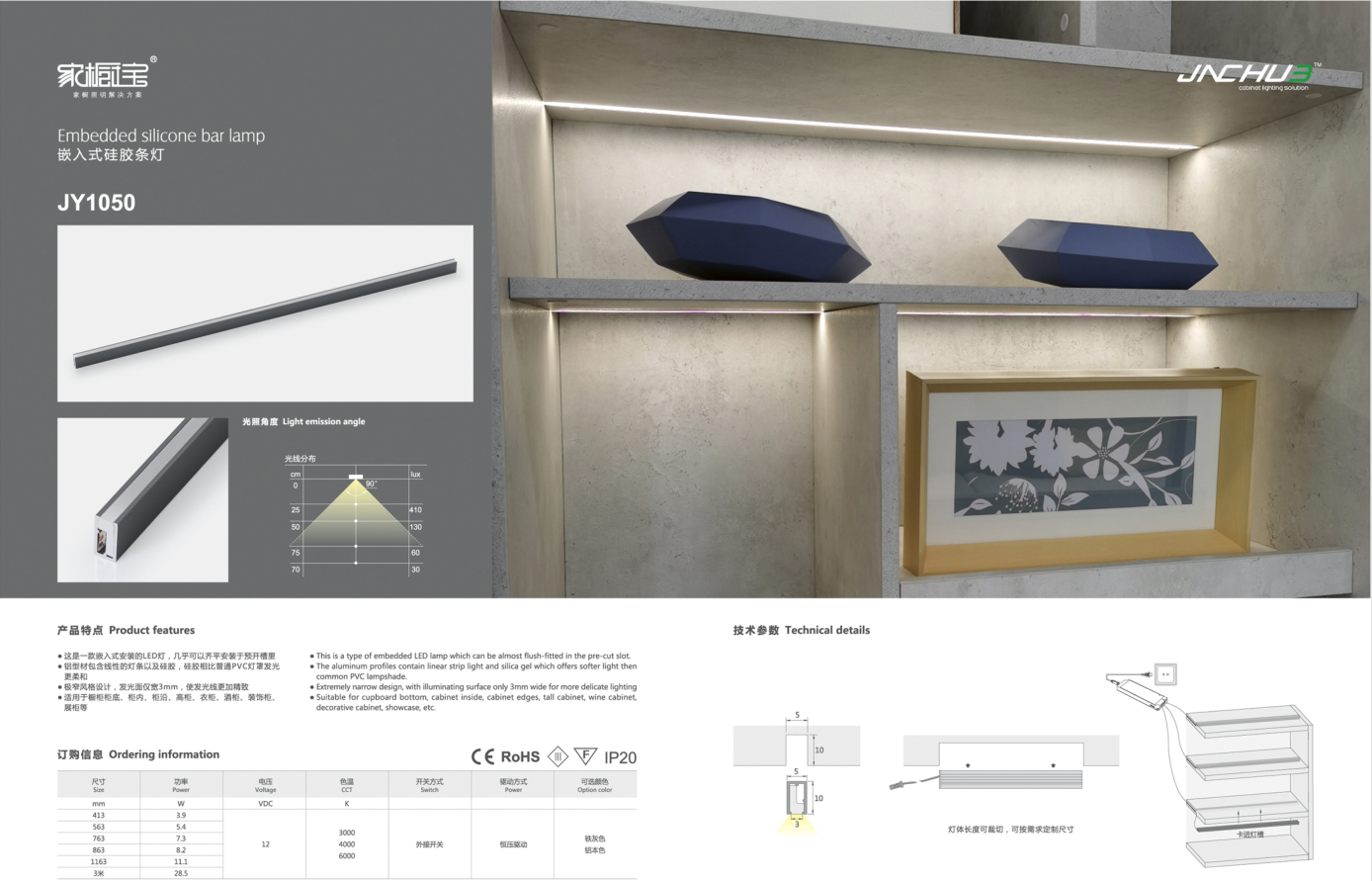 适用于橱柜柜底、柜内、柜沿、高柜、衣柜、酒柜、装饰柜展柜等