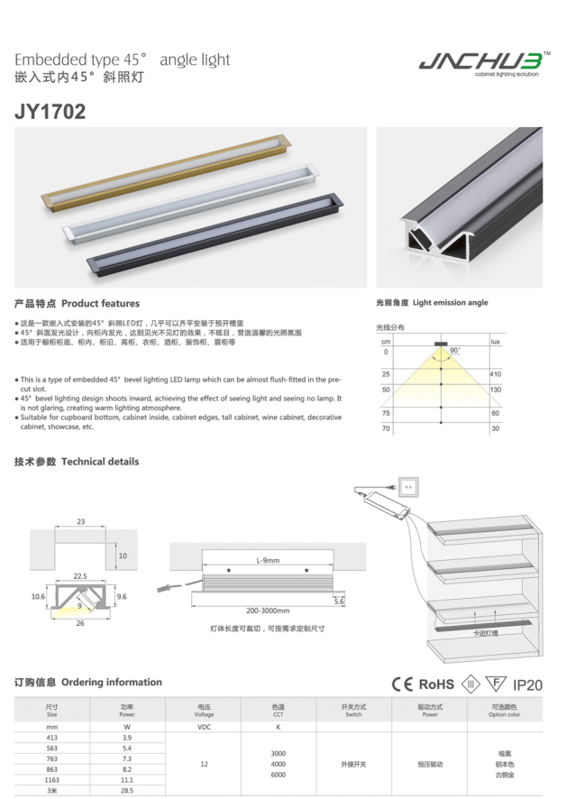这是一款嵌入式安装的45°斜照LED灯,几乎可以齐平安装于预开槽里